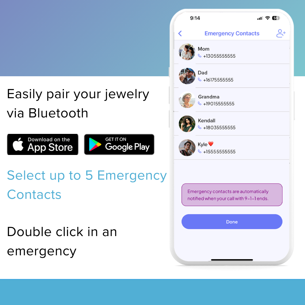 Flare's safety jewelry + app allow you to discreetly alert friends, family, and optionally police in an emergency: